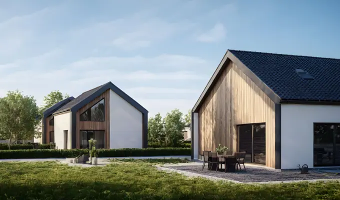 Budujemy domy, nie tylko cztery ściany. Tworzymy ekosystem, który łączy nowoczesne budownictwo, odnawialne źródła energii oraz funkcjonalne dodatki, takie jak garaże czy pergole.