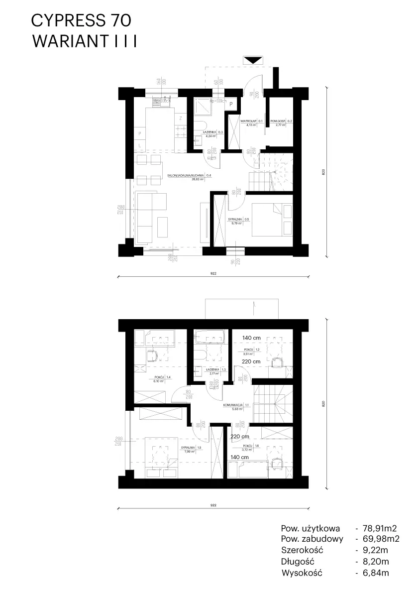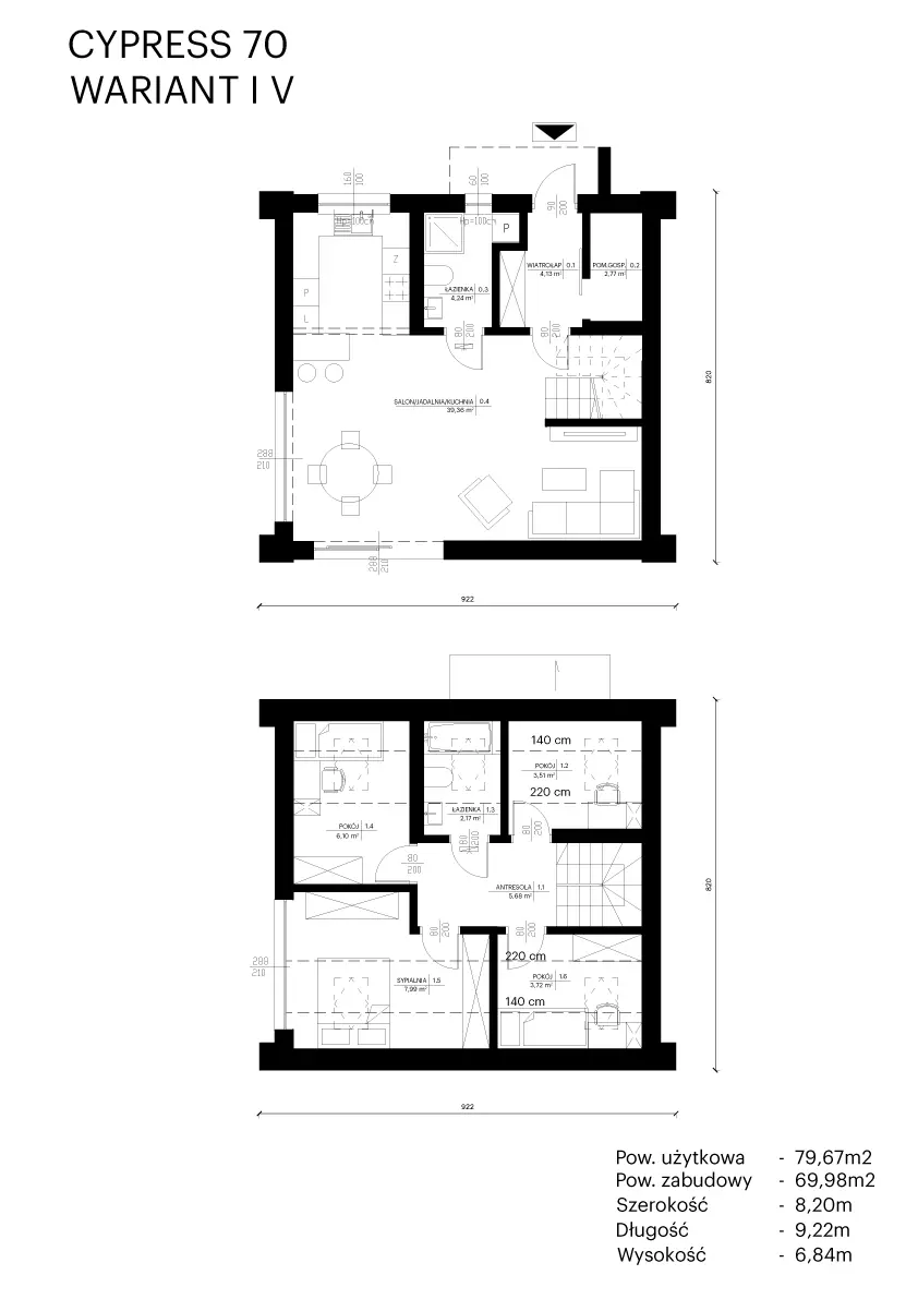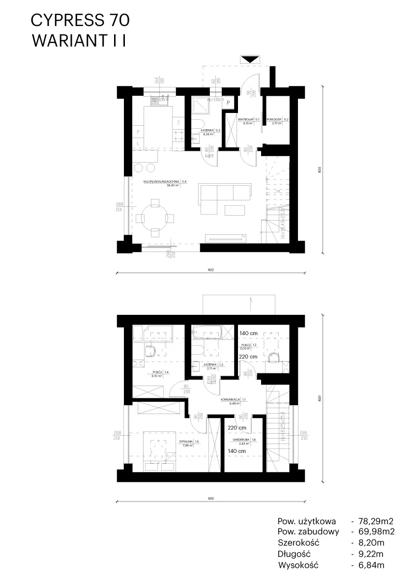 Cypress 70 to nowoczesny, kompaktowy dom, który stanowi realną alternatywę dla mieszkania w bloku. Projekt został stworzony z myślą o parach, rodzinach z dziećmi, a także osobach szukających wygodnego domu bez nadmiaru niewykorzystanej przestrzeni.
