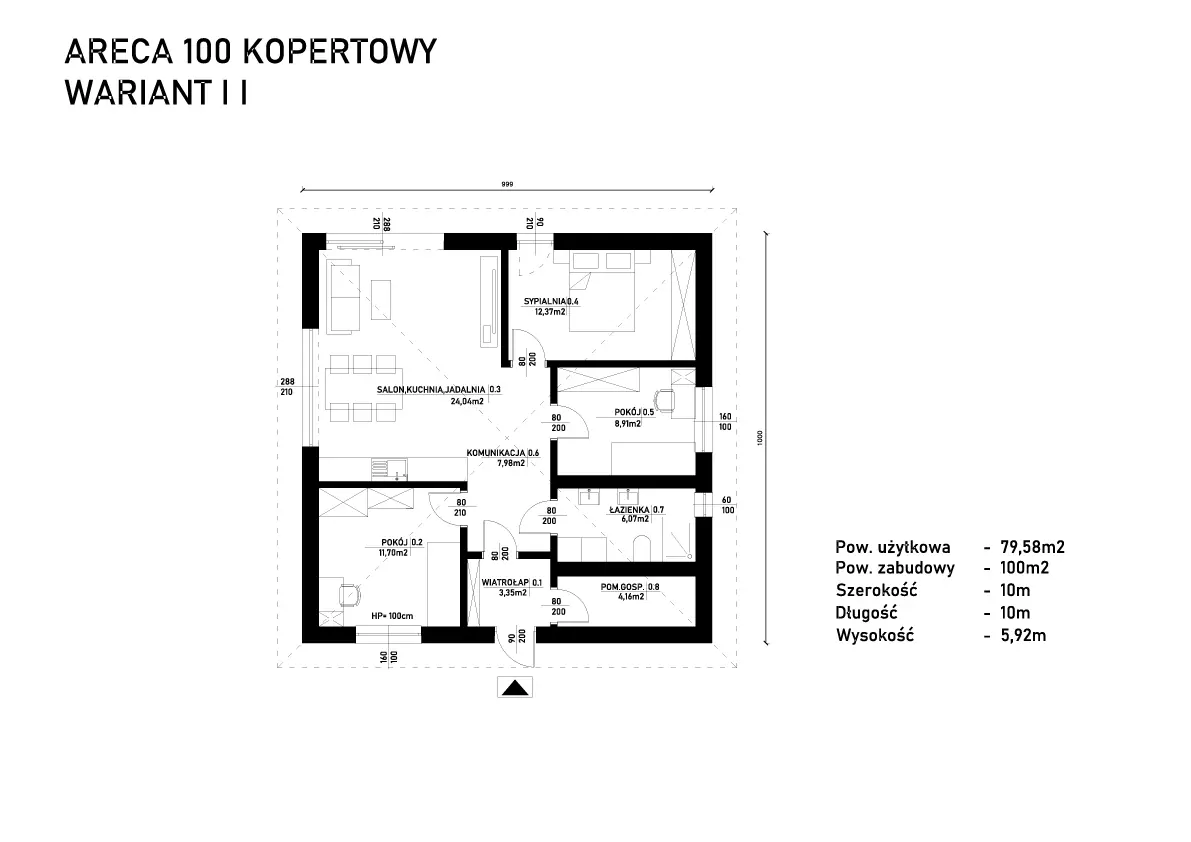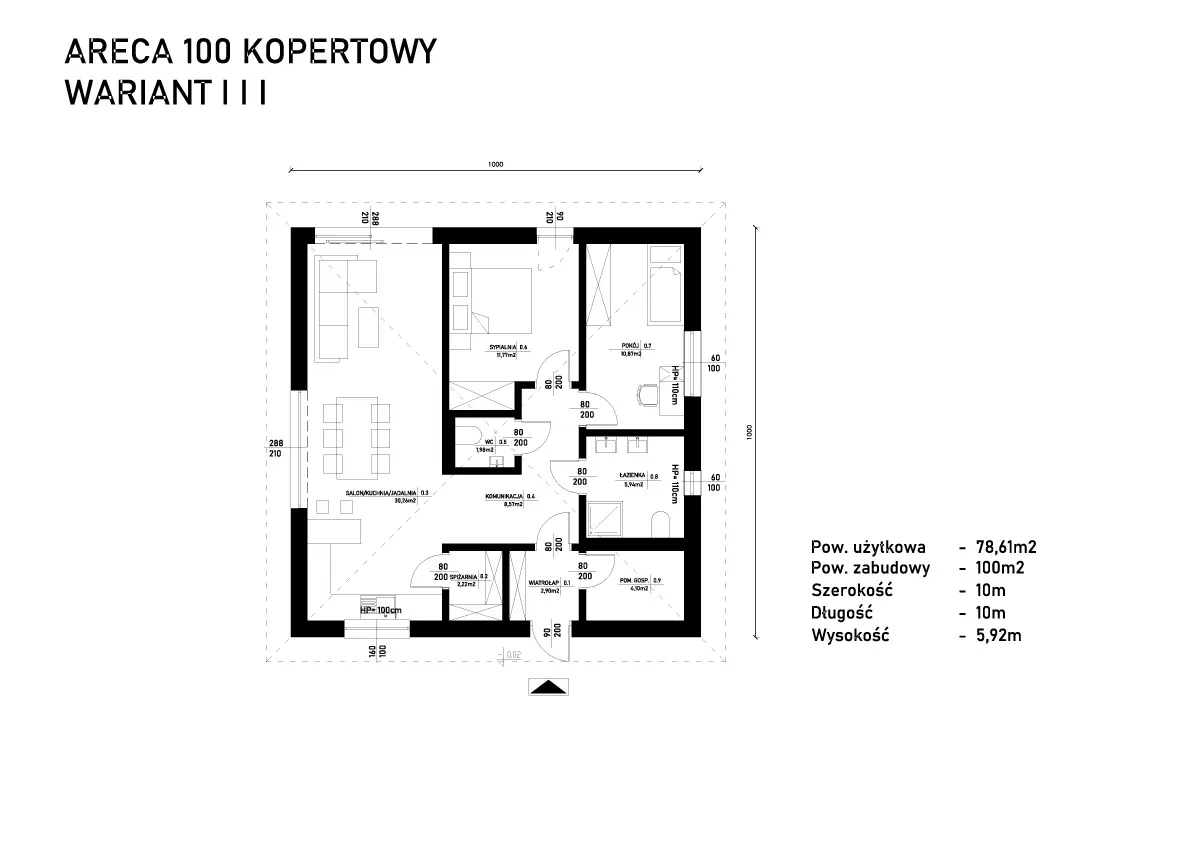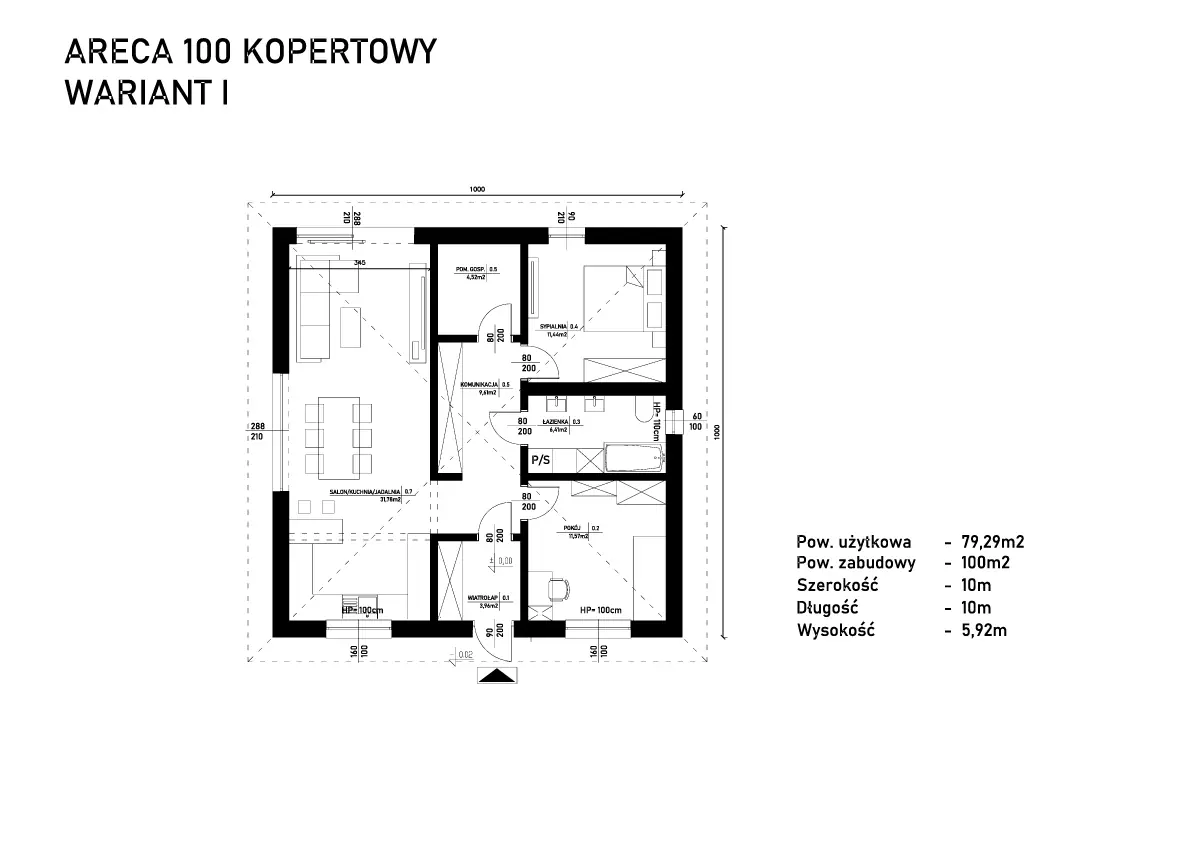 Holly 100 to funkcjonalny, kompaktowy i energooszczędny dom prefabrykowany o powierzchni 100 m² zabudowy, zaprojektowany z myślą o rodzinach, które oczekują wygodnej, dobrze zorganizowanej przestrzeni do życia.